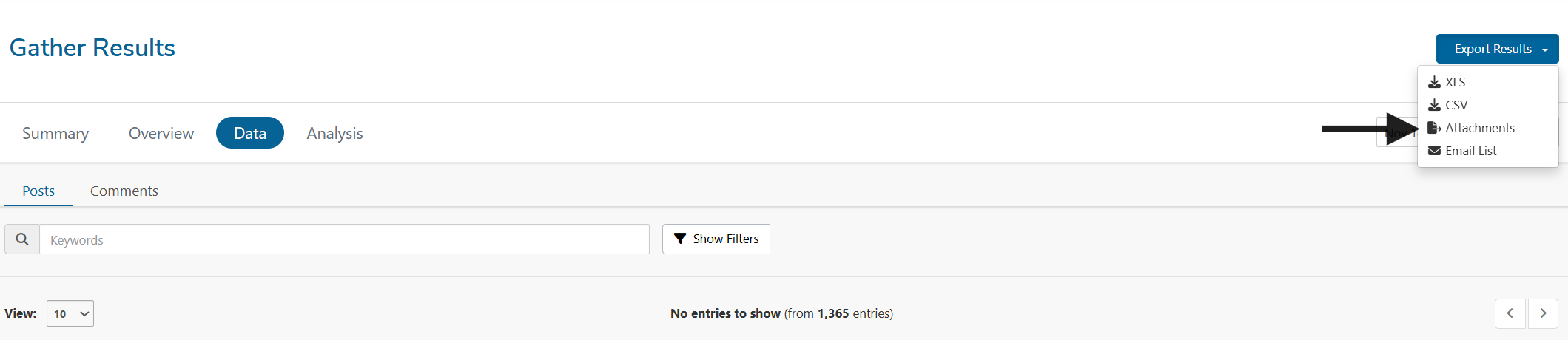 This enhancement adds a new option to the Export Results button in the Data tab for tools that allow file uploads. Site users can now bulk export all attachments provided by participants instead of downloading them one by one. All exported files are delivered in a ZIP package with consistent naming conventions so that attachments are easy to identify and keep organized.