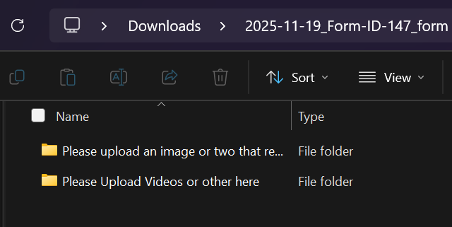Multi-upload question tools (e.g. Form, Social Map): Files are grouped by question folder.