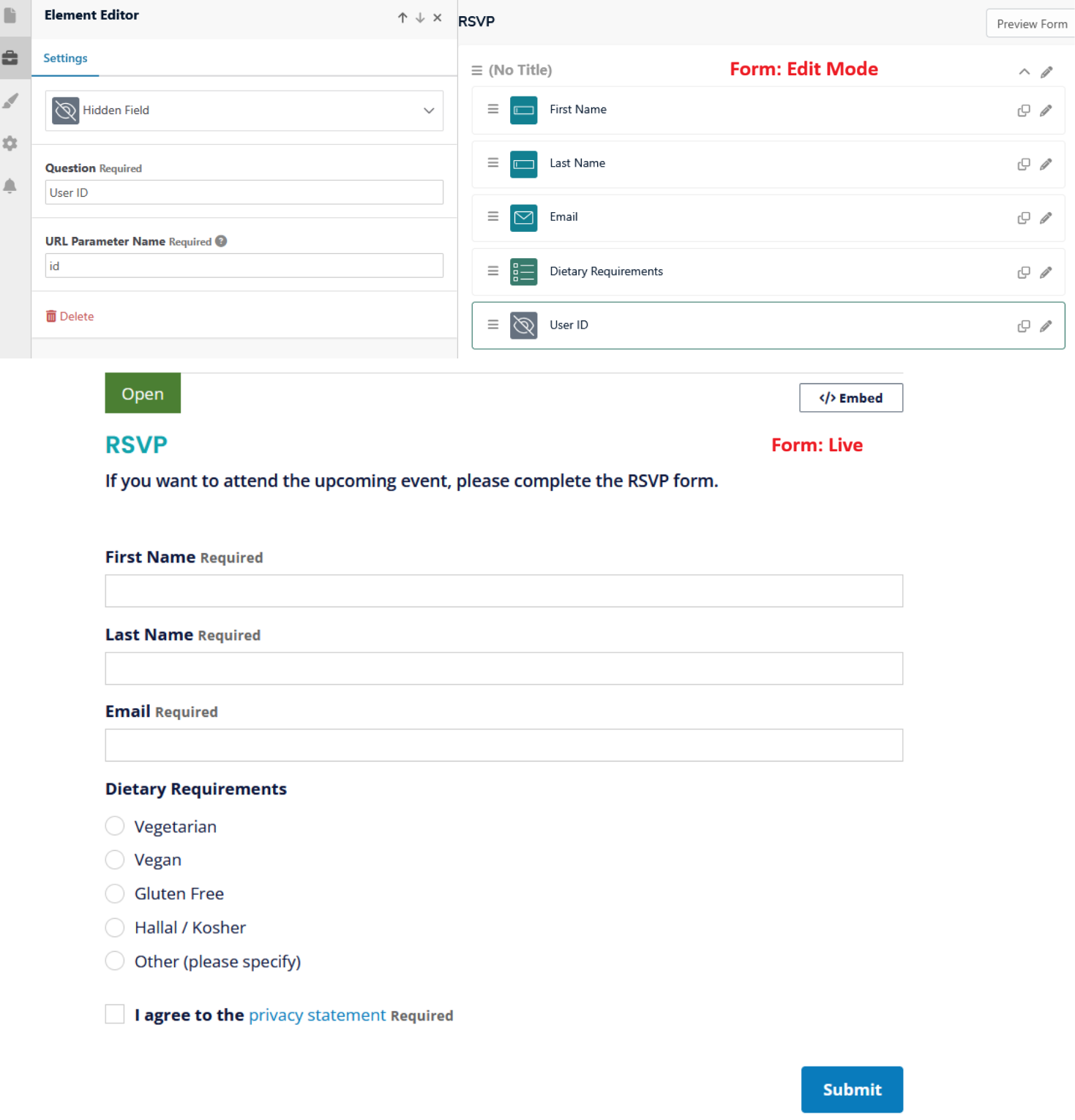 The following preset questions get pre-populated with registered users’ information if they are logged in when filling out the Form: