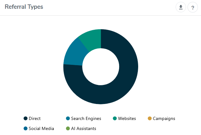 Visitor vs. Visit Counts: Both the Referral Type chart and data table display the number of visitors, not visits. However, since referral type is tied to each visit rather than a visitor, we aim to report on visits instead. This would eliminate discrepancies that arise when a single visitor accesses the site multiple times through different referral types.